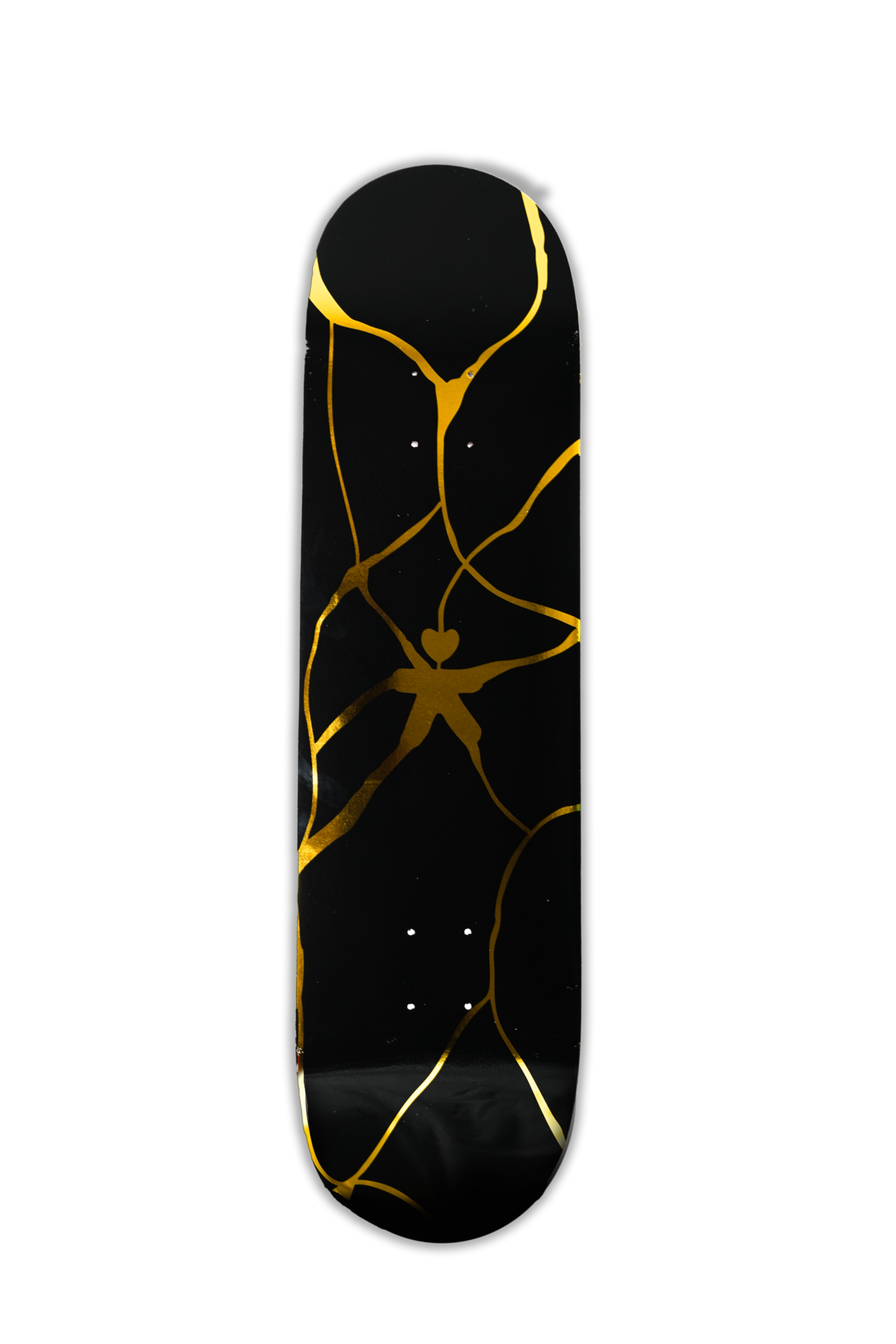 Inspiré du Kintsugi (金継ぎ), une méthode japonaise de réparation des porcelaines ou céramiques brisées au moyen de laque saupoudrée de poudre d'or.