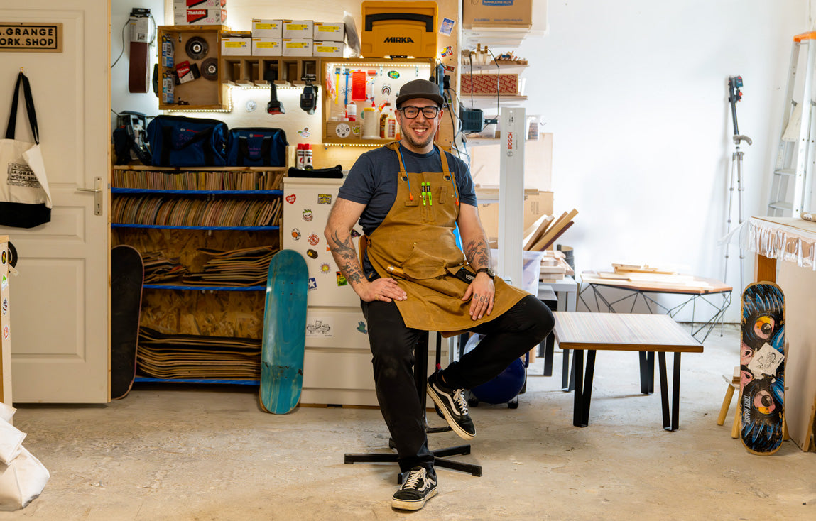 Dans cette démarche, je collabore également avec Julien qui à créer La Grange Workshop, un atelier engagé qui récupère d’anciennes planches de skate pour les transformer en mobilier ou en objets uniques.